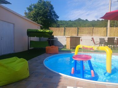 Prostor je idealan sa velikom unutarnjom i vanjskom površinom. Uz prostrani parking tu je još i kuhinja, roštilj i bazen, A uz super ozvučenje i karaoke zabave nije nedostajalo!